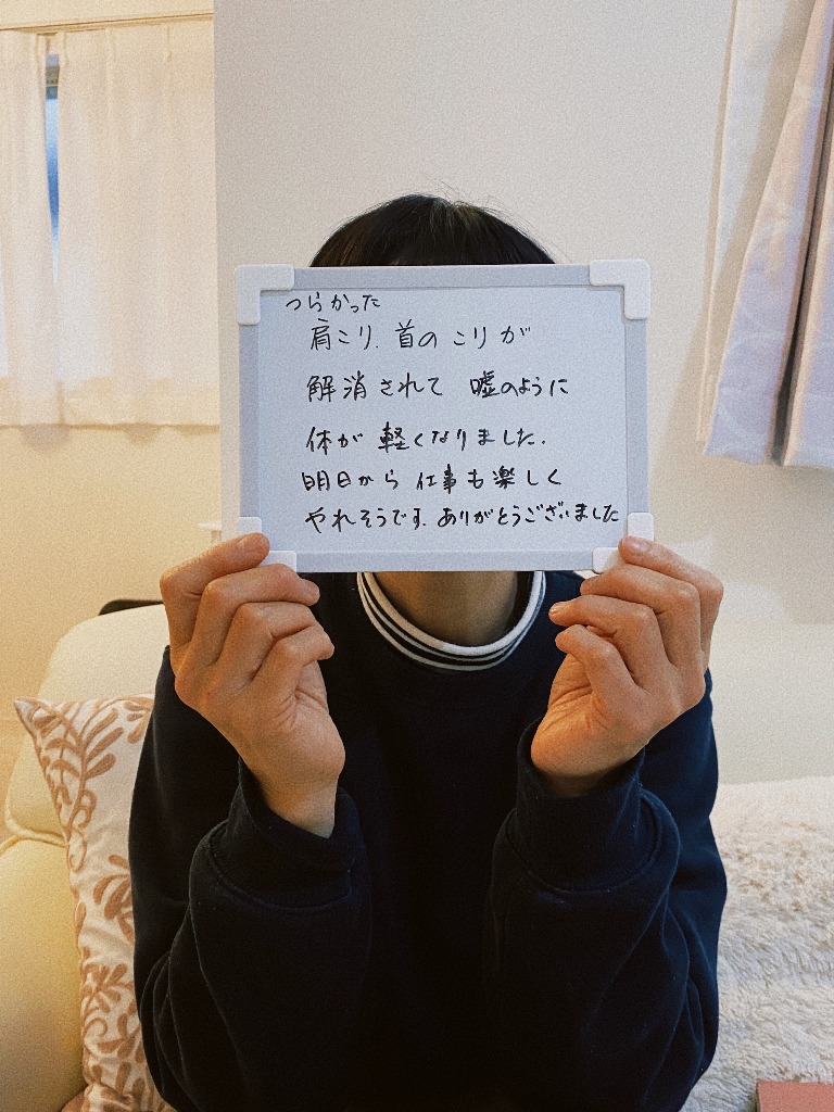 施術後の表情が柔らかくなられ、笑顔になってお話されている姿を見ているのがとても幸せに感じています。